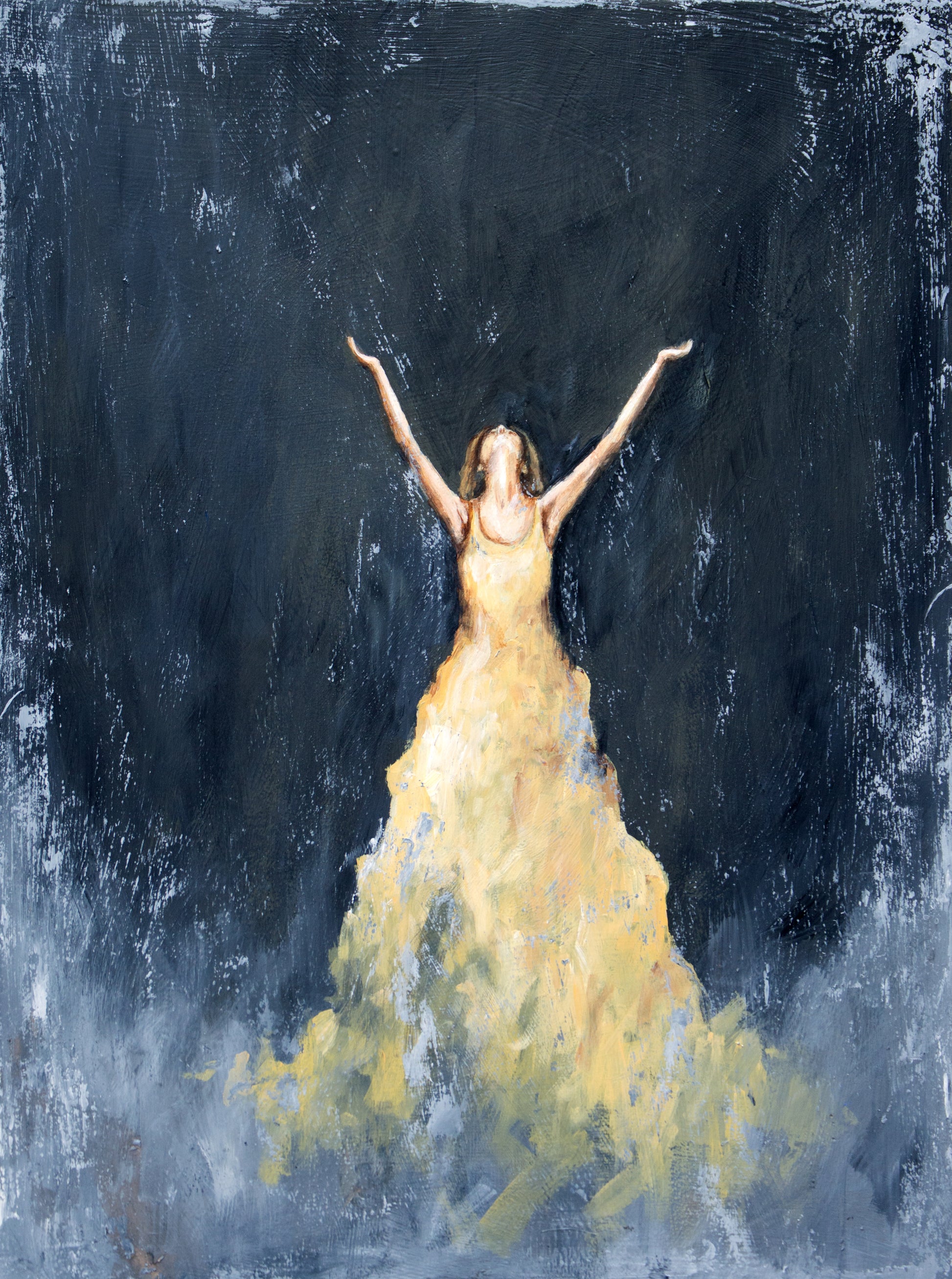 The original piece of artwork, "Beauty from the Ashes", was painted with actual ashes from burnt prayers mixed into the paint. It represents rising above and turning something difficult into something beautiful.
