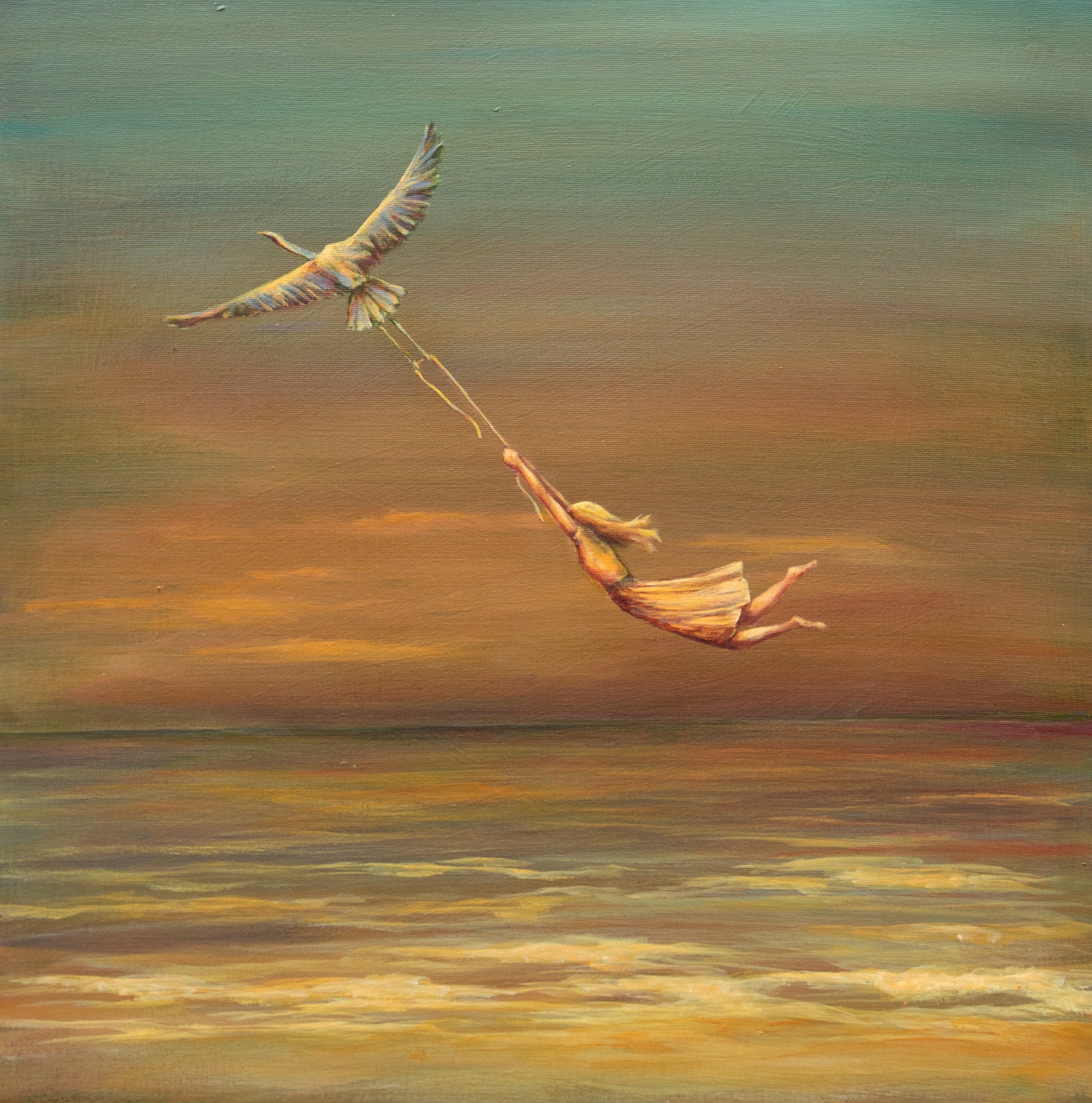 This painting was inspired by a week of painting at the beach in Florida. I met a fisherman who was out fishing at sunrise everyday. He told me that this was his church. I also had a blue heron visit me and my paint set-up every morning. It was a magical week.